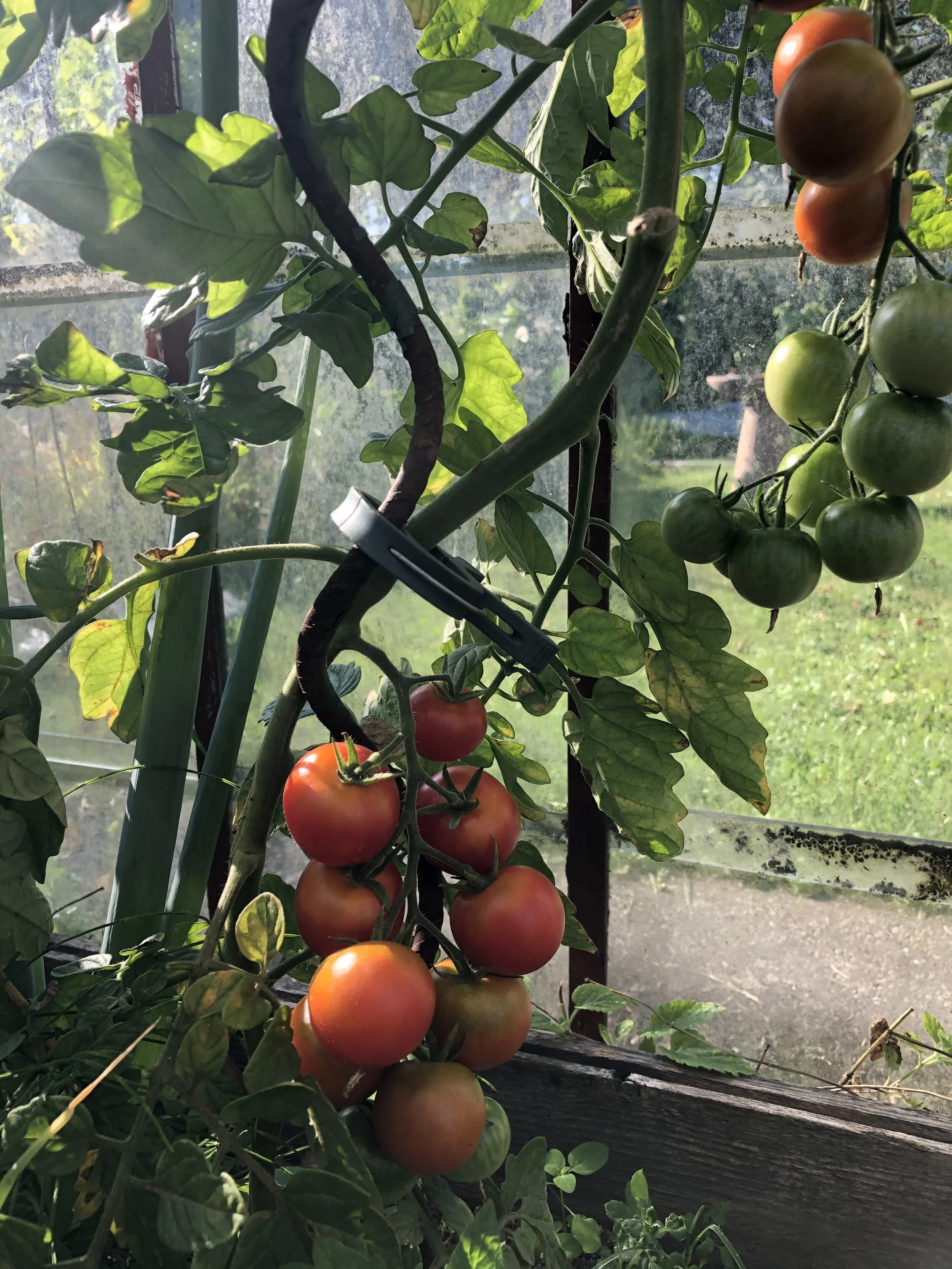 Da hatte ich noch welche im Garten: Gesunde, süsse Tomaten. Einige wurden fremdgepflückt, den Rest musste ich wegen Braunfäule entsorgen.